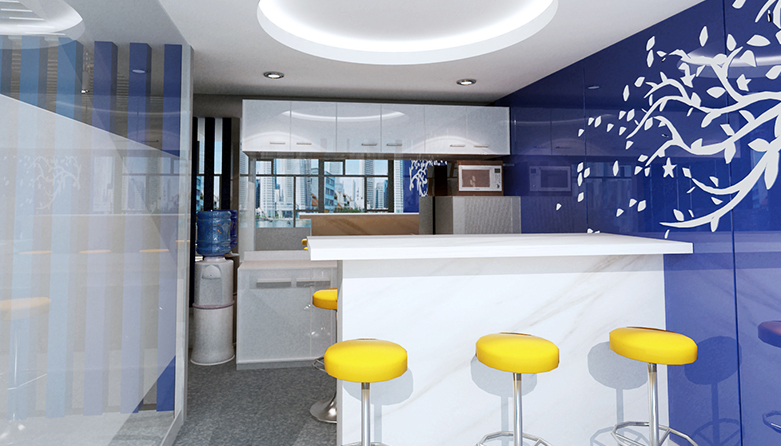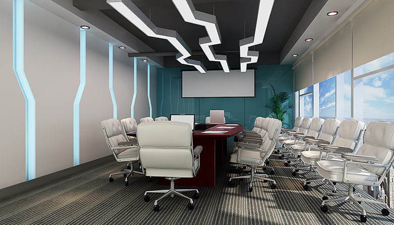 該辦公場所的業主是經營電子元件的企業,因此本案設計圍繞企業的經營特點展開,天花板的照明造型以電路板作為設計靈感,以二次元的平面美感去體現三維的空間感,點明了企業的性質。設計中“光”是構成空間、表達企業個性不可或缺的重要因素和載體,空間中注重點、線、面的組合表現。